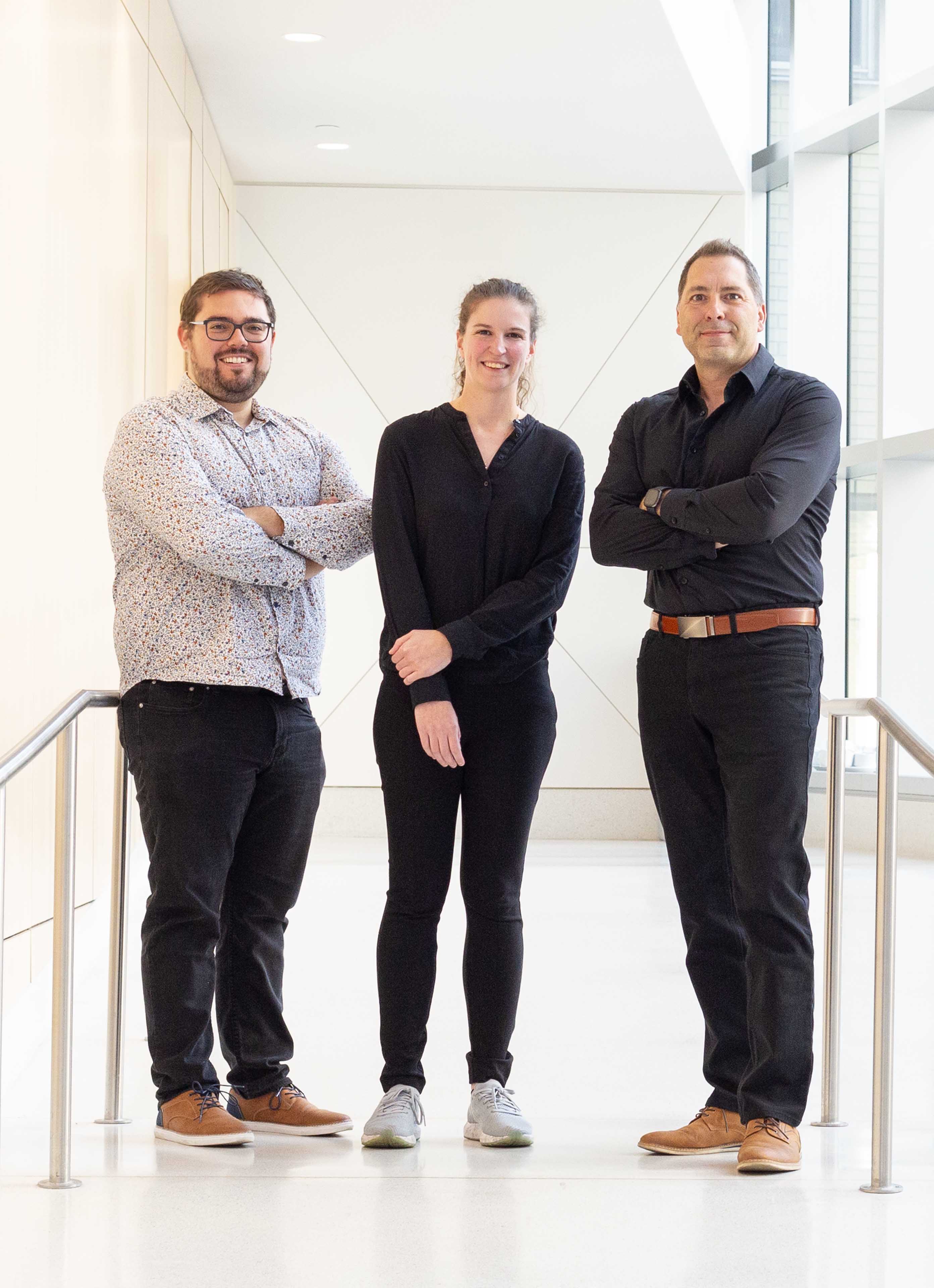 From left to right, Pr. Serge McGraw and co-authors Anthony Lemieux, Fannie Filion-Bienvenue and Thomas Dupas © CHU Sainte-Justine